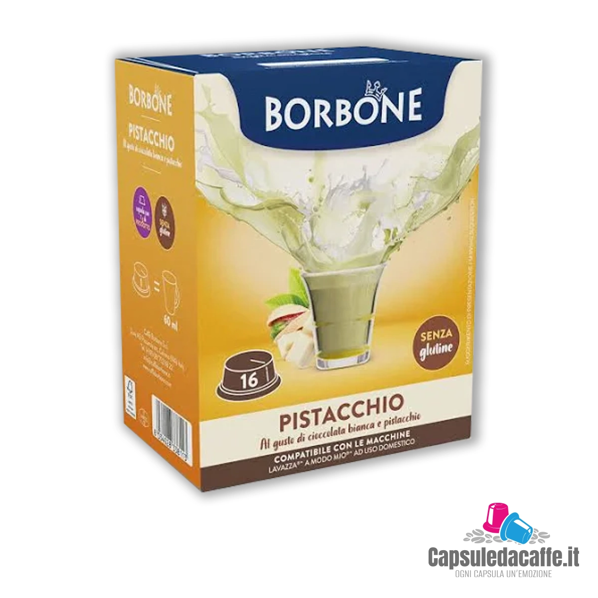 Le capsule compatibili Lavazza® A Modo Mio® Caffè Borbone® Gusto Pistacchio portano sul tuo palato il profumo e il sapore irresistibile dei pistacchi tostati, creando un’esperienza di caffè unica e indimenticabile.